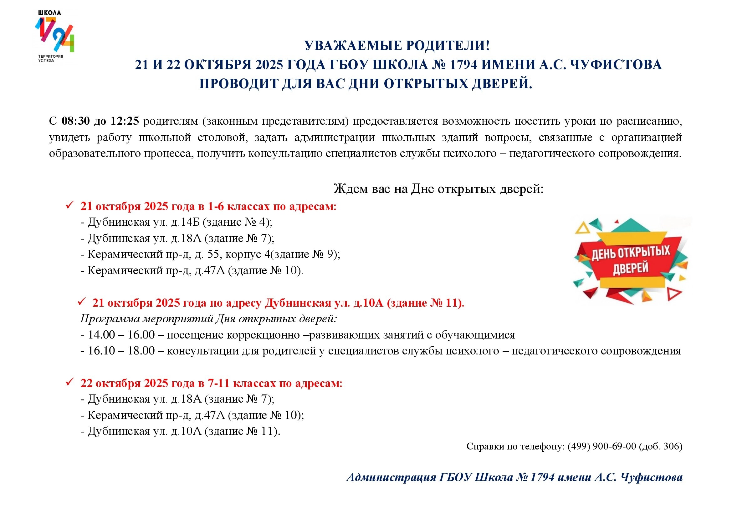 Информация для родителей (законных представителей) школьников.