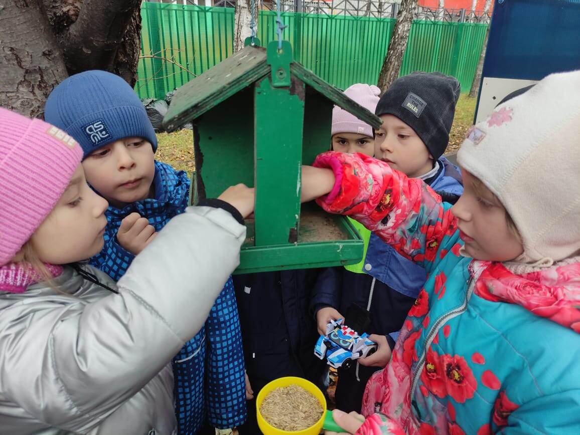 Итогом дня стала объемная работа — «Синичкина кормушка», которую дети мастерили с большим старанием.