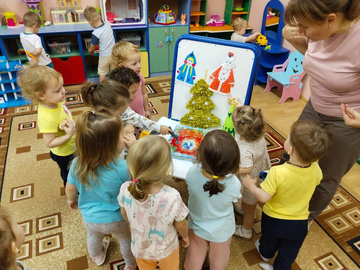 Воспитанники дошкольных групп № 4-2 и 7-2 вместе с воспитателями Мелешко Еленой Валентиновной и Сергеевой Ириной Николаевной провели удивительное путешествие-квест «Подарок для Деда Мороза».