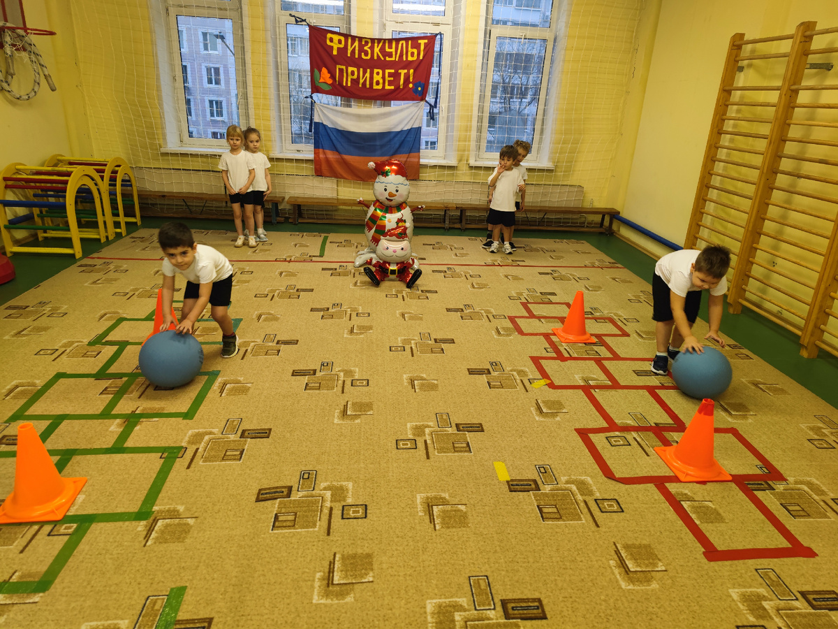 На физкультурном мероприятии ребята быстрее всех прошли полосу препятствий и показали Деду Морозу свою ловкость и быстроту.