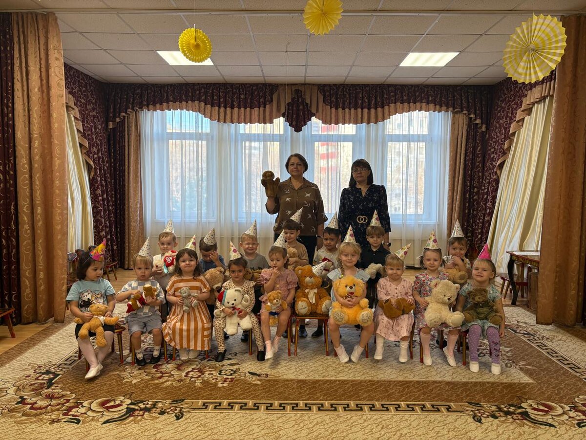 В младшей группе № 3-4 «Семицветик» прошел тематический досуг «День рождения Плюшевого Мишки». В большом семейном кругу дети поздравили Мишку песней «Каравай», поиграли в подвижную игру «У медведя во бору...». Вместе с воспитателями Кадырбаевой Лилией Амирхановной и Бакановой Екатериной Алексеевной поговорили о большой и крепкой семье плюшевого Мишки, где все любят и заботятся друг о друге.
